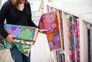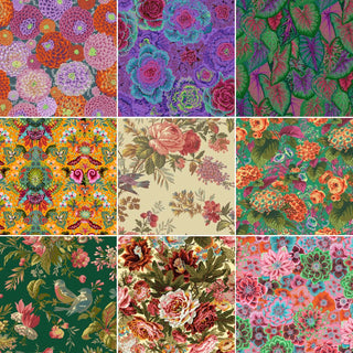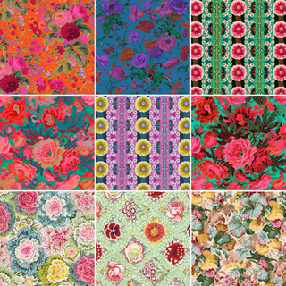 When looking for fabric for fussy-cutting on your own, look for prints that have a variety of beautiful blooms, lush leaves, or delicate little critters like butterflies or birds. You want to make sure that the scale is appropriate for the size of your composition, not too small and not too big. However, oftentimes you can get away with using a large scale print by cutting into an element and making it smaller (ie. not using the entire leaf or flower). I buy a LOT of Kaffe Fassett and Anna Maria Horner fabric!